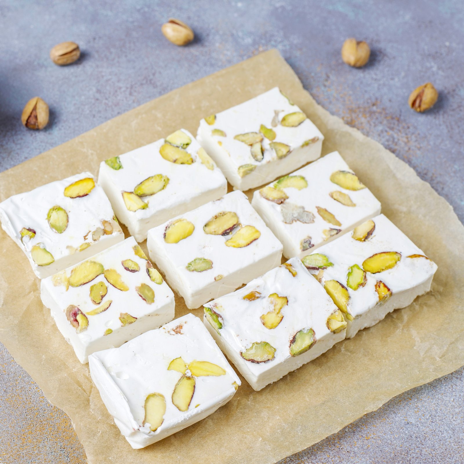 Добавьте к своему десерту украшения из лепестков фисташки.