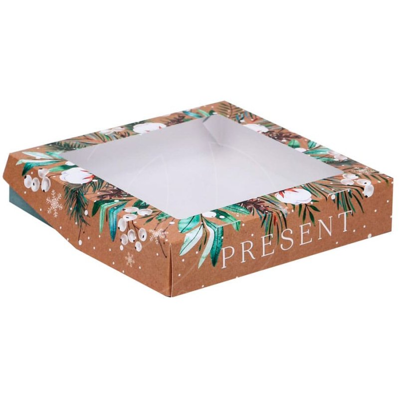 Доставка Коробка для сладостей "Зимний подарок" 20х20х4 см из магазина в вашем городе: