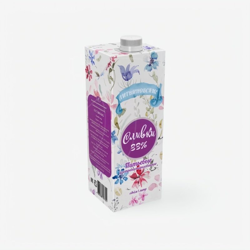 Сливки ультрапастеризованные Литвиновские 33% 1 л