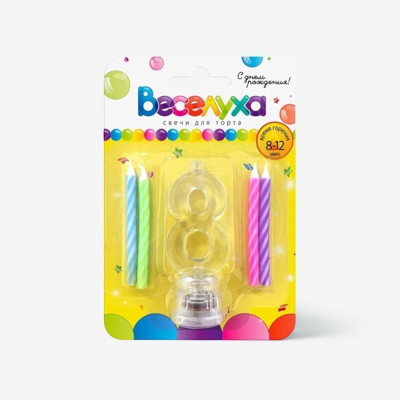 Доставка Набор тортовых классических свечей с мигающим держателем Цифра "8" из магазина в вашем городе:
