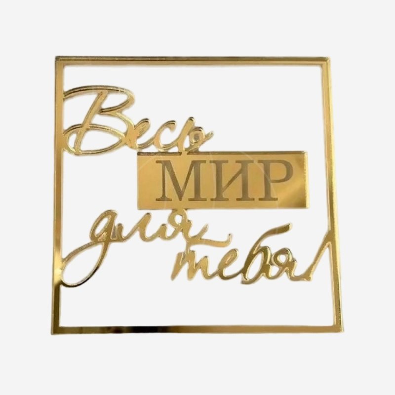 Доставка Топпер декоративный акриловый "Весь мир для тебя" Золото 9х9 см из магазина в вашем городе: